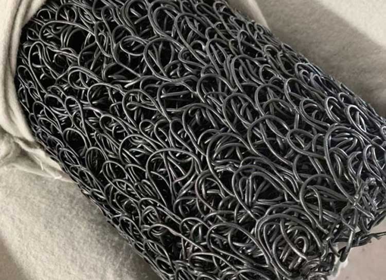 塑料盲溝是由塑料芯體外包裹濾布組式。塑料芯體是以熱可塑性合成樹脂為主要原料,經過改性,在熱熔狀態下,通過噴咀擠壓出細的塑料絲條,再通過成型裝置將擠出的塑料絲在結點上熔接,形成三維立體網狀結構。