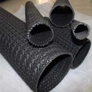 又名:塑料盲溝、疏水管、曲紋網狀透水管,是一種以高密度聚乙烯(HDPE)為主要原料,經高溫擠出機曲向搖擺擠出,再冷卻后而成型的一種具有一邊密封(俗稱不透水層),而另一邊具有均勻密集小孔(俗稱透水層)的管材。硬式透水管上半部分2/3帶有小孔,下半部分1/3為不帶孔,能防止地下水發生二次滲漏,迅速把地下水排走。